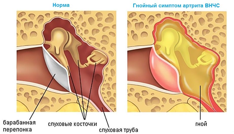 Наиболее часто на практике встречается инфекционный неспецифический острый артрит. Челюстной сустав может инфицироваться в результате лор-заболевания, например, отит, тонзиллит, фарингит или патологии других близкорасположенных структур: воспаление слюнных желез, стоматологические проблемы (кариес, пародонтит, гнойные болезни зубов и десен).
