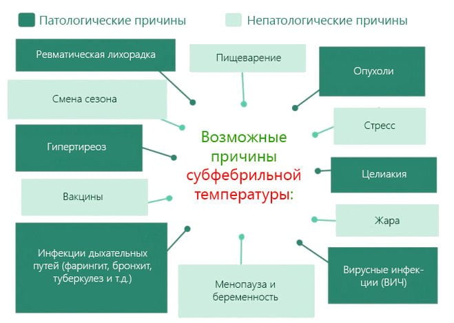 - возможна субфебрильная температура тела;