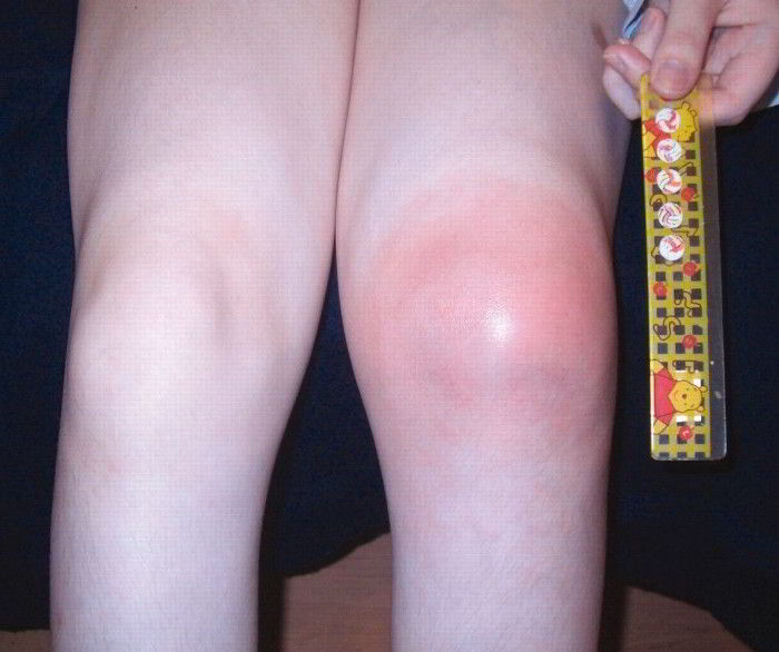 - гиперемия кожи над поврежденным коленом.