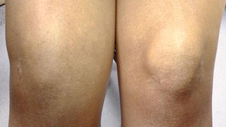 Дискомфортные ощущения, первыми возникающие на этом этапе, очень похожи на банальную усталость после интенсивных спортивных тренировок или тяжелой физической работы. Колено ноет при ходьбе, иногда появляются слабые боли, исчезающие после непродолжительного отдыха. Затем сустав начинает отекать, особенно в утренние часы. После сна больное колено выглядит немного крупнее здорового, а кожные покровы над ним слегка краснеют и становятся горячими на ощупь. При попытке согнуть сустав чувствуется скованность, первые движения даются с трудом. Практически все симптомы артрита исчезают до обеда за счет выработки в организме гормоноподобных веществ, купирующих воспаление. На завершающем этапе 1 стадии этих органических соединений недостаточно для устранения болей и отеков. Артрит быстрее развивается у маленьких детей, сопровождается более выраженными клиническими проявлениями: