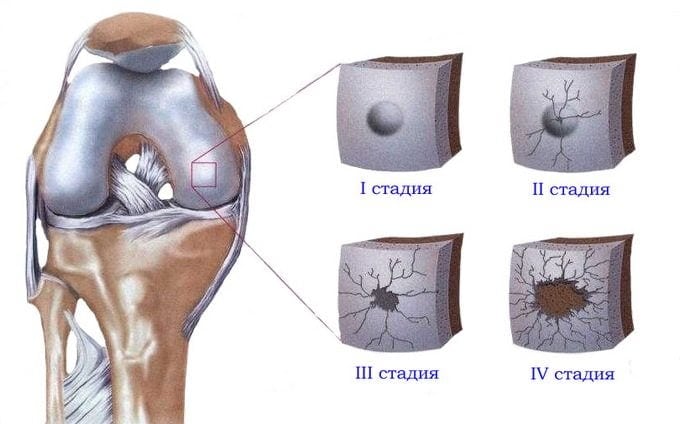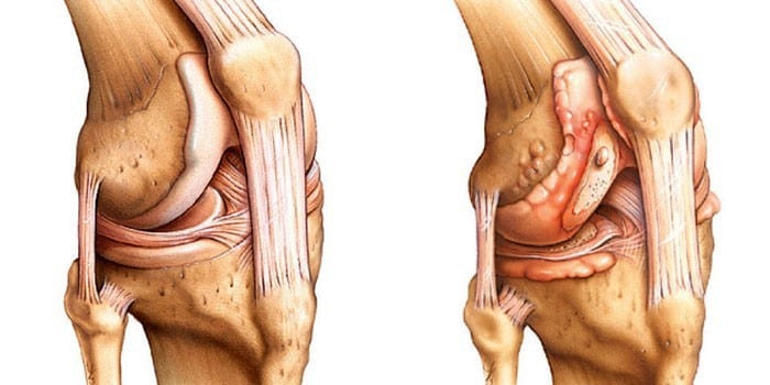 Независимо от вида болезни и причины его возникновения колено оказывается поражено воспалительным процессом. В него постепенно вовлекаются практически все суставные и околосуставные структуры — гиалиновые хрящи, костные и мягкие ткани, синовиальные оболочки, связки, мышцы, сухожилия. У больного может быть обнаружен моноартрит, для которого характерно поражение только одного коленного сочленения. Если воспаление затрагивает сразу 2 сустава, то выставляется диагноз «олигоартрит», более двух сочленений — «полиартрит».
