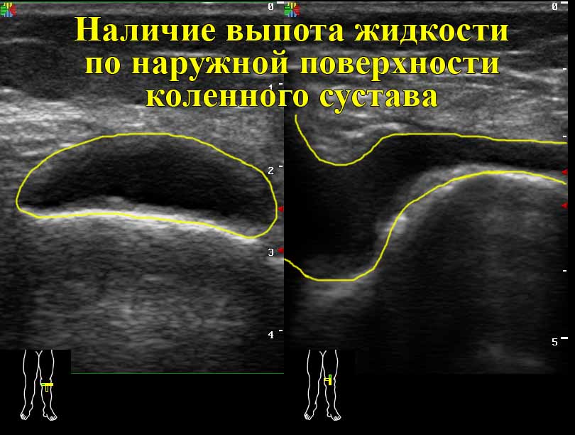 - выпот в суставные сумки (56% клинических случаев) со средними значениями (4,17 ± 2,48) мм.