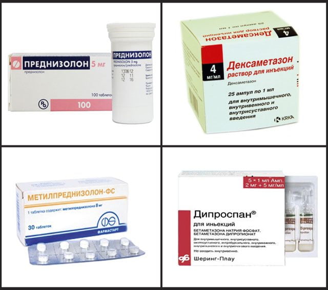 Воспалительный процесс в суставе только антибиотиками остановить не удастся. Несмотря на активное влияние на возбудителя, антибактериальные средства не оказывают действие в отношении иммунного воспаления. Для этого используются гормональные препараты – глюкокортикостероиды и цитостатики. К первым относятся: