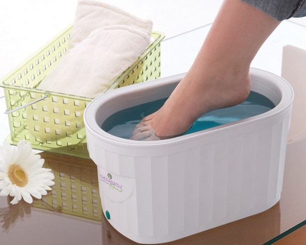 Одним из эффективных физиотерапевтических методов лечения артрита стопы являются аппликации с парафином. Его предварительно разогревают до 50 °C, а затем широкой кистью или деревянной лопаткой наносят в несколько слоев на область больного сустава. Поверх парафина укладывают клеенку и плотную ткань. Лечение в домашних условиях также возможно с проведением аппликаций. Но вместо послойного нанесения чаще просто парафин немного остужают, формируют из него лепешку и прикладывают на 1 час к стопе.