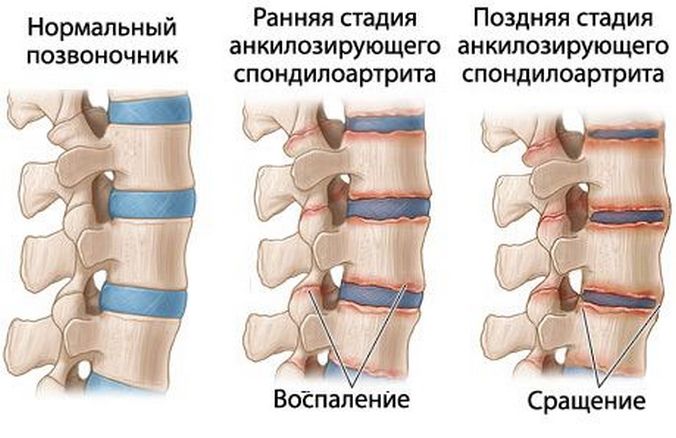 | Болезнь Бехтерева | Патология возникает в результате постоянной агрессии иммунных клеток с развитием хронического воспалительного процесса в тканях суставов, связок и межпозвонковых дисков. Изменение иммунного статуса происходит из-за переохлаждения, острого или хронического инфекционного заболевания |