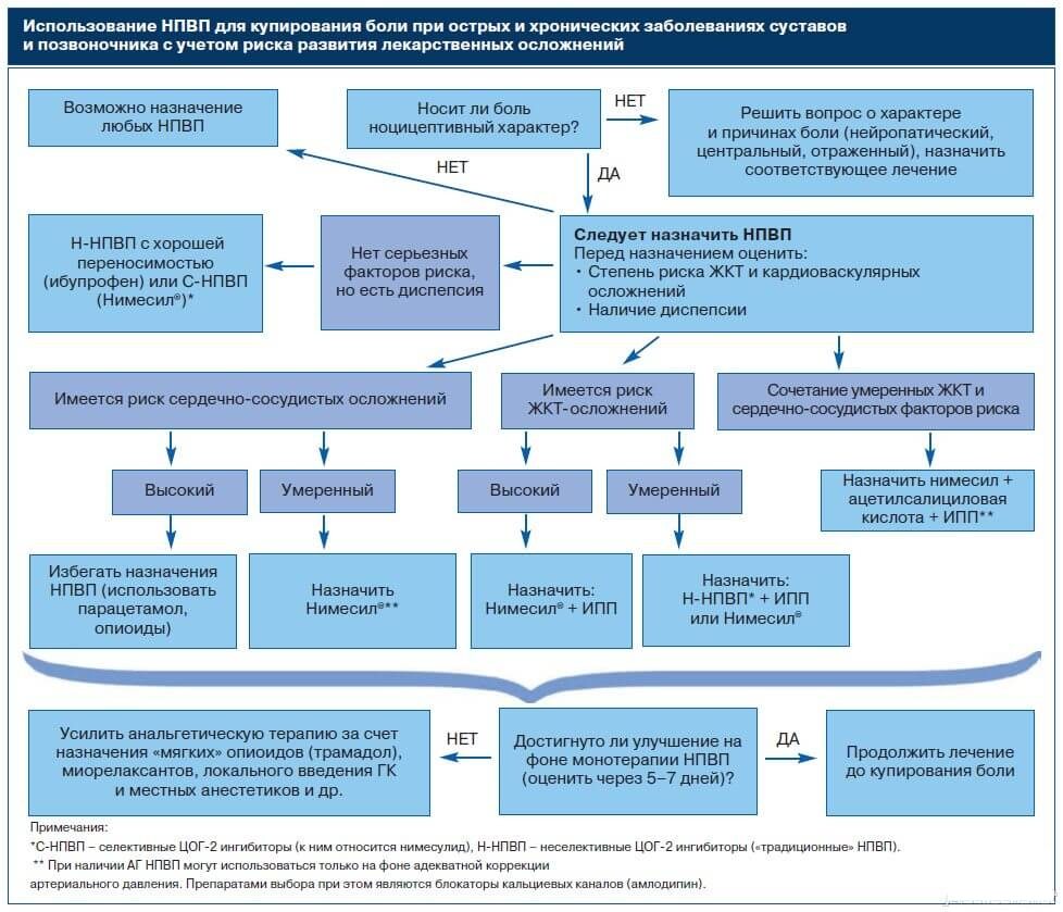 В случае обострения и при отсутствии тяжелых почечных и печеночных нарушений лечащий врач назначает анальгетики с противовоспалительным нестероидным эффектом – Ибупрофен®, Целексиб®, Диклофенак® или Эторикоксиб®.