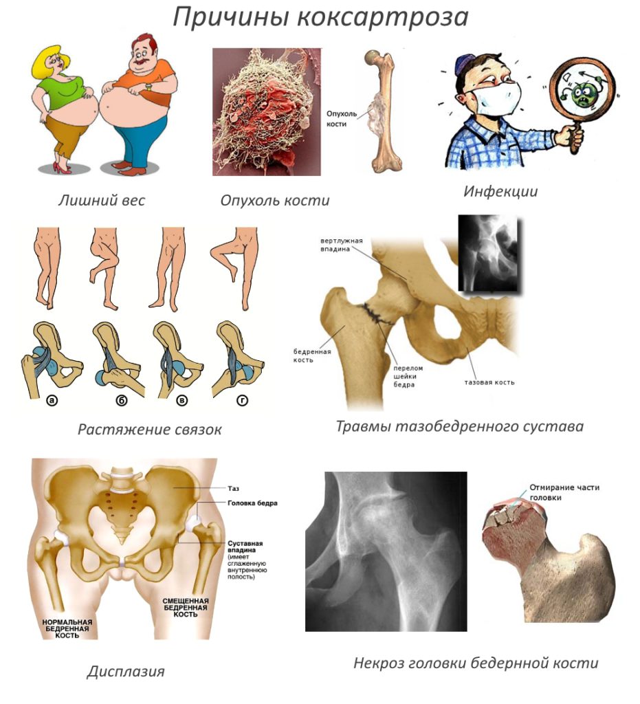 Коксартроз тазобедренного сустава 2 степени развивается вследствие влияния следующих факторов: