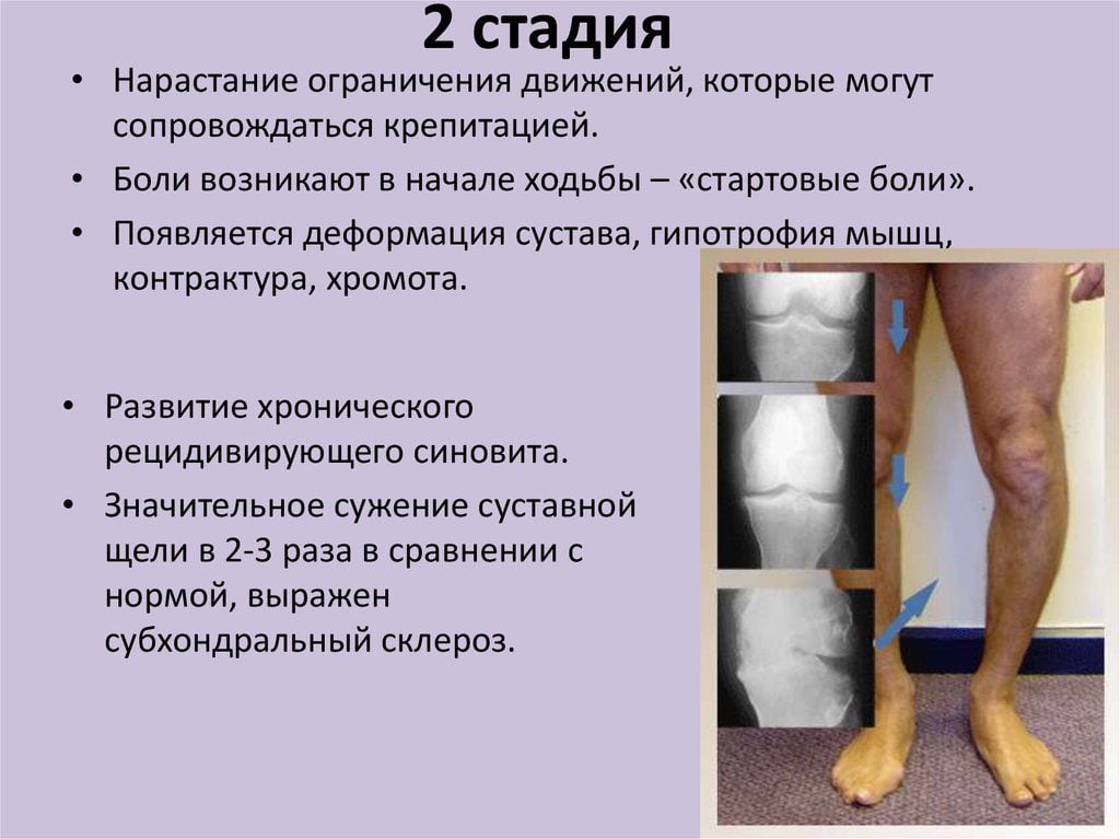 Для деформирующего остеоартроза характерно бессимптомное течение на начальном этапе развития. По мере разрушения сустава появляются первые боли. Они выражены слабо, возникают обычно после физических нагрузок. Интенсивность болей медленно, но неуклонно возрастает. Им сопутствуют и другие симптомы патологии: