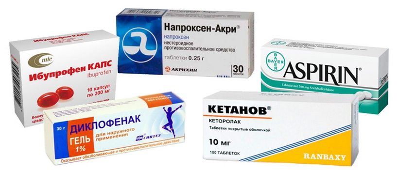 - нестероидные противовоспалительные и противоболевые средства: Диклофенак, Вольтарен, Ибупрофен, Нимесил, Кетанов, Триган, Кеторолак;