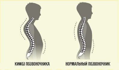Нарастающий процесс кальцинирования ограничивает подвижность шейного отдела, позвонки начинают выгибаться, образуется резко выраженный кифоз верхнего отдела позвоночника.