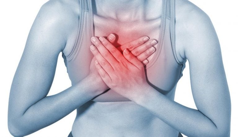 Обычно боль в горле при шейном остеохондрозе — не единственный симптом патологии. Если дегенеративно-дистрофическим процессом поражаются верхние грудные позвонки и межпозвонковые диски, то происходит более выраженное расстройство иннервации. Пациент жалуется врачу на острые или тупые, давящие боли в области груди, эпигастрия, подреберьях.