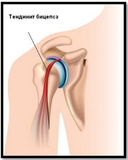 Это заболевание связано с воспалительным процессом в сухожилиях бицепса. Развивается, как правило, на фоне выполнения однотипных движений плечевого сустава. Обычно, про такие боли говорят – «руку перетрудил». Для тендинита характерна сильная боль в области плеча, способная переходить на локоть, покраснение кожи и припухлость больного сочленения. Кожа в месте воспаления гиперемирована.