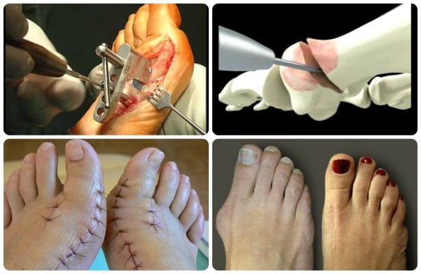 На запущенных стадиях болезни косточку возле большого пальца лечить приходится с помощью следующих методов: