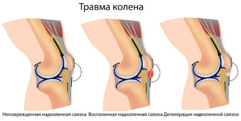 - повреждение коленных связок или мениска.