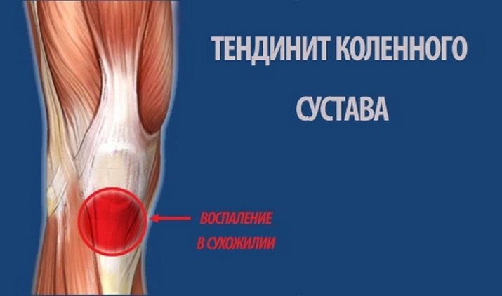 Это процесс воспаления сухожилий колена. Колено болит достаточно сильно в районе нижней части надколенника, отёк явно выражен. Характерны тупые боли на начальной стадии после физической нагрузки, а при прогрессе болезни – и во время нагрузки, и до неё.