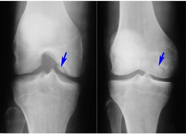 Особенность патологии — ее развитие в молодом возрасте. Болезнью Кенига страдают мужчины 15-30 лет. Считается, что заболевание возникает из-за локального нарушения кровообращения в костях, вызванного тяжелыми физическими нагрузками или травмами. Это приводит к появлению зоны некроза (омертвения) в суставном хряще. В последующем поврежденный участок хряща отрывается и начинает мигрировать по синовиальной полости.