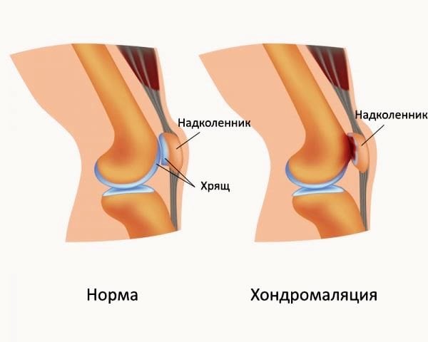 - хондромаляция надколенника — патологическое состояние, при котором происходит разрушение хряща задней поверхности надколенника. После пробежки ощущается ноющая боль, исчезающая только после продолжительного отдыха. Необходимо срочно обратиться к врачу для купирования дегенеративно-дистрофического процесса.