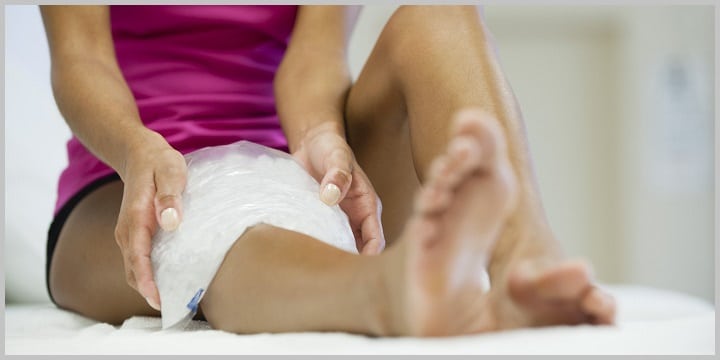 - использовать холодовые компрессы. Снизить интенсивность дискомфортных ощущений помогает охлаждение. К коленям прикладывается на 10-15 минут пакет с кубиками льда, обернутый плотной тканью;