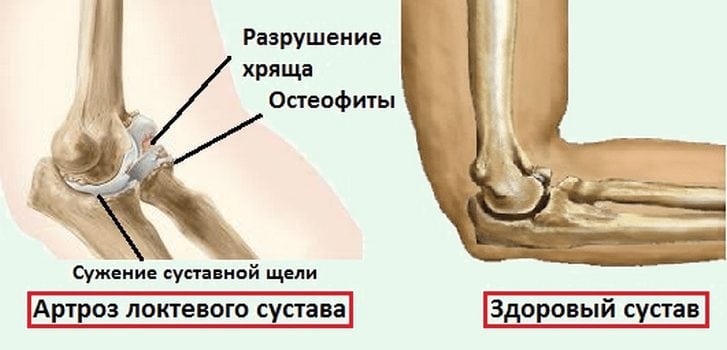 Один из факторов, провоцирующих появление болезненных ощущений в локте — разрушение суставной ткани. Часто это происходит вследствие возникновения артроза локтевого сустава. Он появляется при постоянных долгих нагрузках на сочленение, а также при гормональных сбоях. Боль при артрозе очень сильная, особенно при сгибании, а пораженный участок приобретает неподвижность. Предотвратить развитие артроза можно бережным отношением к суставу и недопущением перегрузок. Лечение составит терапия, принятие хондропротекторов и внутреннее введение гиалуроновой кислоты.