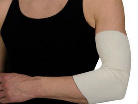 - при очень сильных непрекращающихся болях нужно временно обездвижить локоть, наложив на него лангету на косынке (как при переломе);