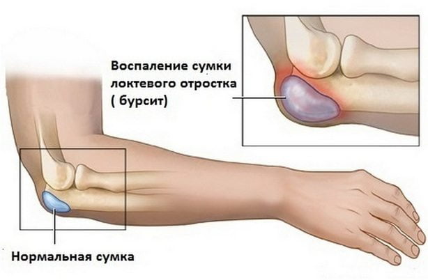 Бурсит локтевого сустава — процесс воспаления суставной сумки локтя. При этом заболевании неприятные, болезненные ощущения появляется каждый раз при шевелении локтевого сочленения. Болеть может как правая рука, так и левая.