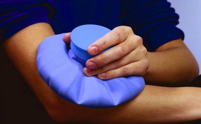 - Полностью снять всю нагрузку с пострадавшей (левой или правой) руки и обездвижить ее. Для устранения сильной боли можно положить на сустав холодный компресс. Если локоть слишком опухлый, то такая процедура поможет уменьшить отек.