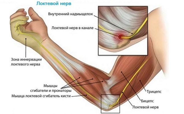 - Синдром кубитального канала. Он обусловлен генетической предрасположенностью или врожденным нарушением анатомии локтя.