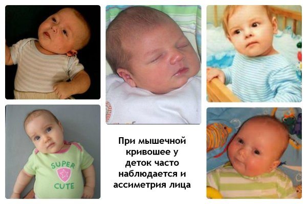 Заподозрить патологию можно по вынужденному положению головы малыша. Из-за постоянного напряжения у ребенка болит грудино-ключично-сосцевидная мышца шеи справа. При длительном течении заболевание может приводить к асимметрии лица и деформации позвоночника.
