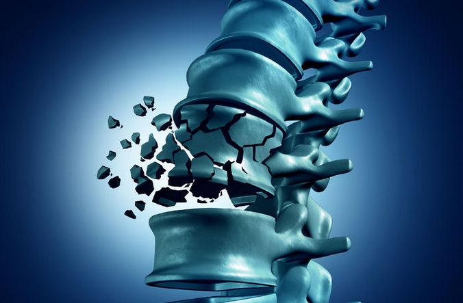 - переломами позвоночника или позвонков, в том числе компрессионными. Компрессионные поясничные переломы, не осложненные повреждением спинного мозга, – явление распространенное, особенно у мужчин старше 40 лет. В момент перелома может никаких неприятных ощущений и не возникнуть. Впоследствии наблюдаются резкие, острые боли, усиливающиеся при движении корпуса, иногда даже при глубоком дыхании или кашле. В некоторых случаях боли отдают вниз, как при симптомах «острого живота». Вероятность перелома высока, если у мужчины остеопороз;
