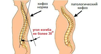 Для патологического кифоза характерны частые боли в области лопаток. Значительное искривление позвоночника нередко становится причиной ущемления нервных корешков и спинного мозга. В таких случаях клиническая картина дополняется слабостью в ногах, нарушением чувствительности, тазовыми расстройствами.