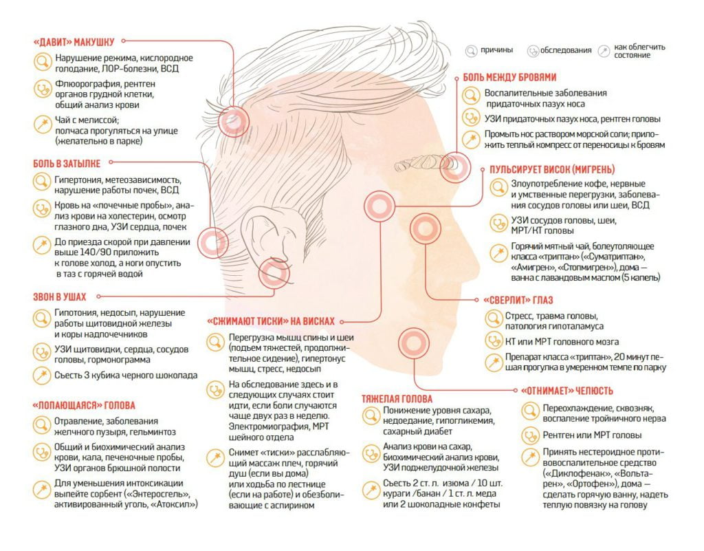 | Головные боли напряжения | Постоянное перенапряжение мышц плечевого пояса, частые стрессы, депрессия | Ноющие диффузные боли в голове, иррадиирующие в шейную область |