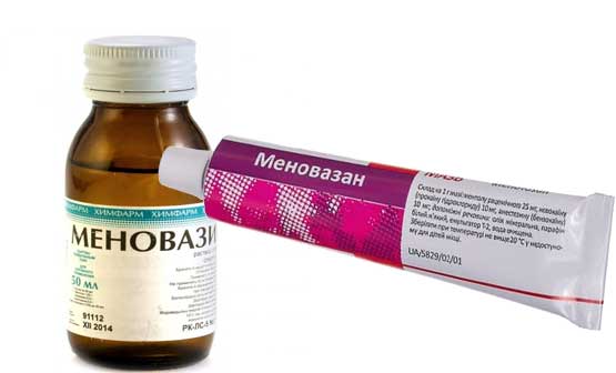 От болей в копчике, возникших в результате травмирования, хорошо помогает мазь Индовазин. Ее анальгетическое, регенерирующее и стимулирующее кровообращение действие обеспечивают индометацин и троксерутин. Схожими свойствами обладают раствор Меновазин и и мазь Меновазан.