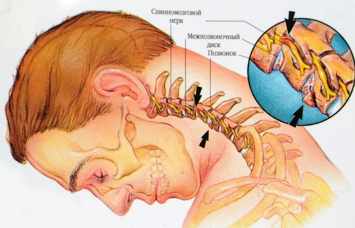 Малоподвижный образ жизни приводит к нарушению кровообращения в области шейных позвоночных структур. Из-за дефицита питательных веществ расстраивается трофика, провоцируя разрушение межпозвонковых дисков с дальнейшим формированием остеофитов, протрузий, грыжевых выпячиваний.