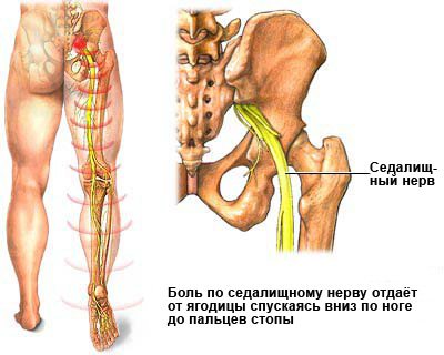 - иррадиация болевых ощущений в ногу и ягодицу;