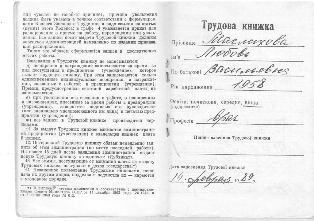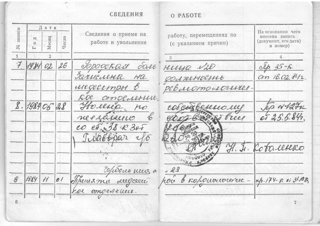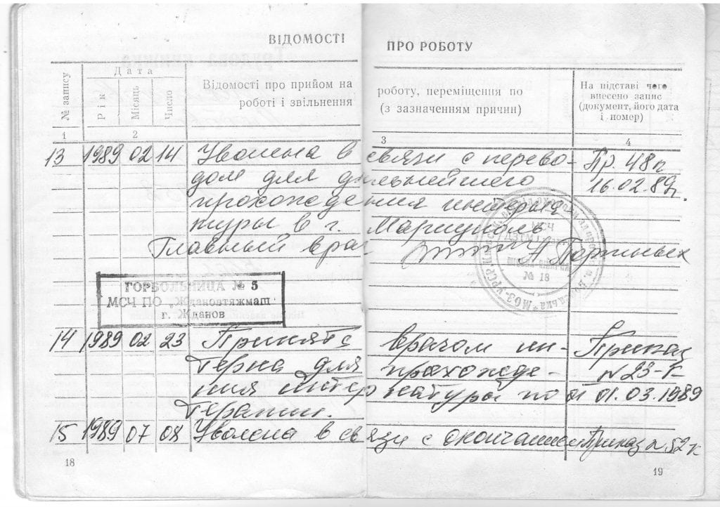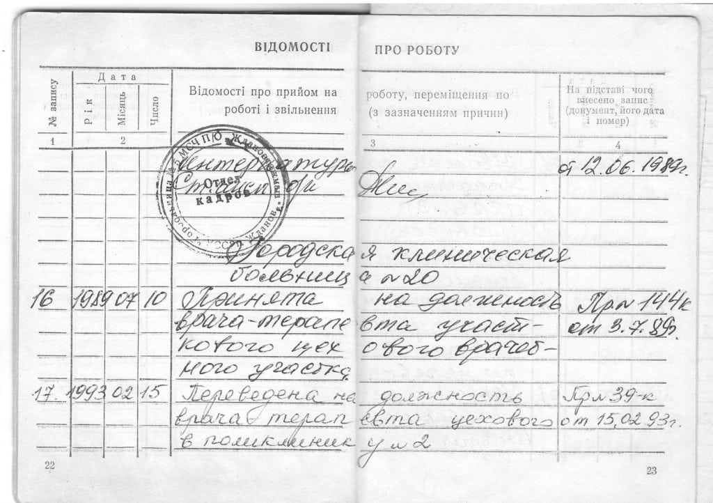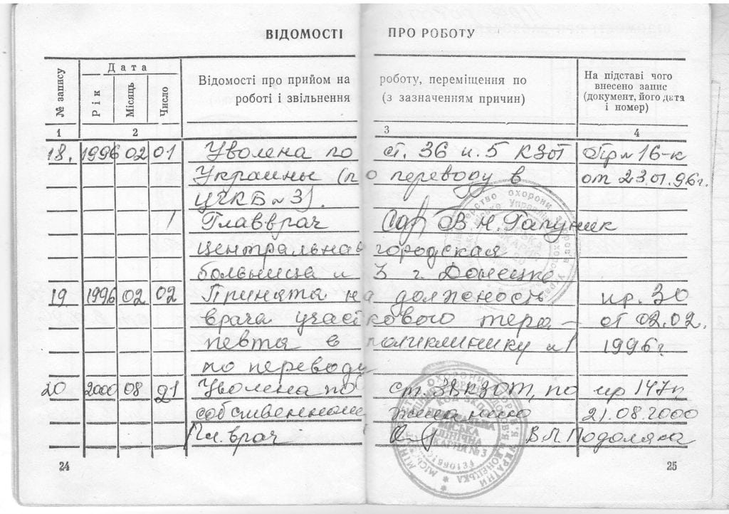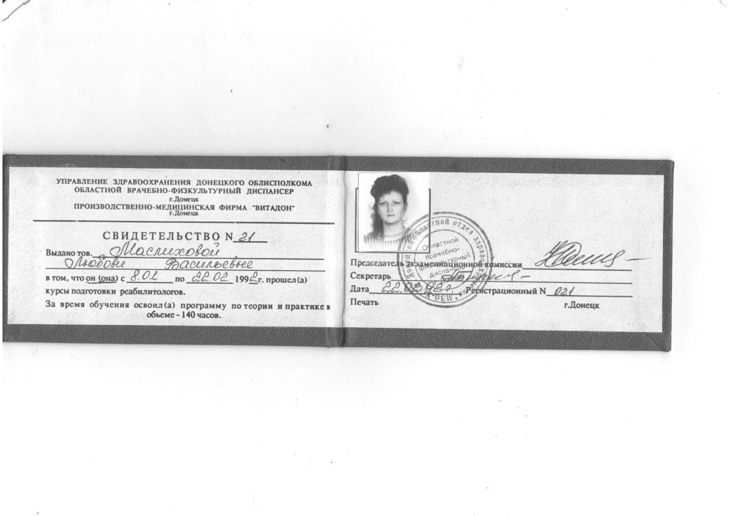 1958 г.р. В 1986 году закончила Донецкий Государственный медицинский институт по специальности «лечебное дело», комиссией присвоена квалификация «врача». С 21.09.1976 работа по специальности до 2013 года.