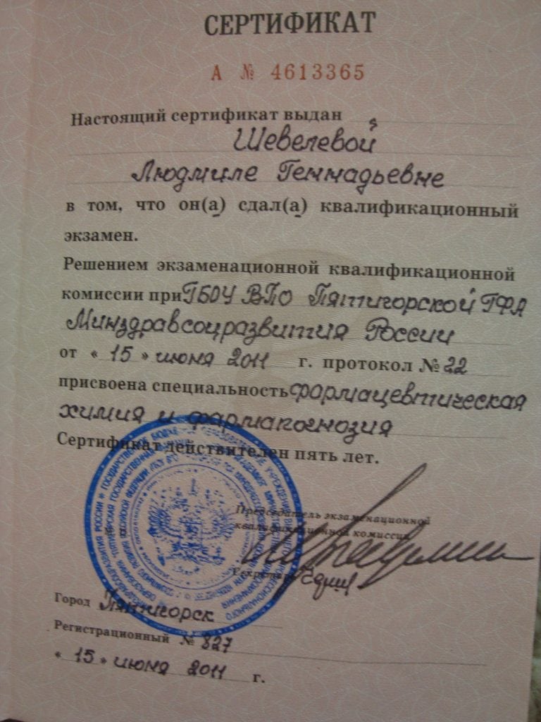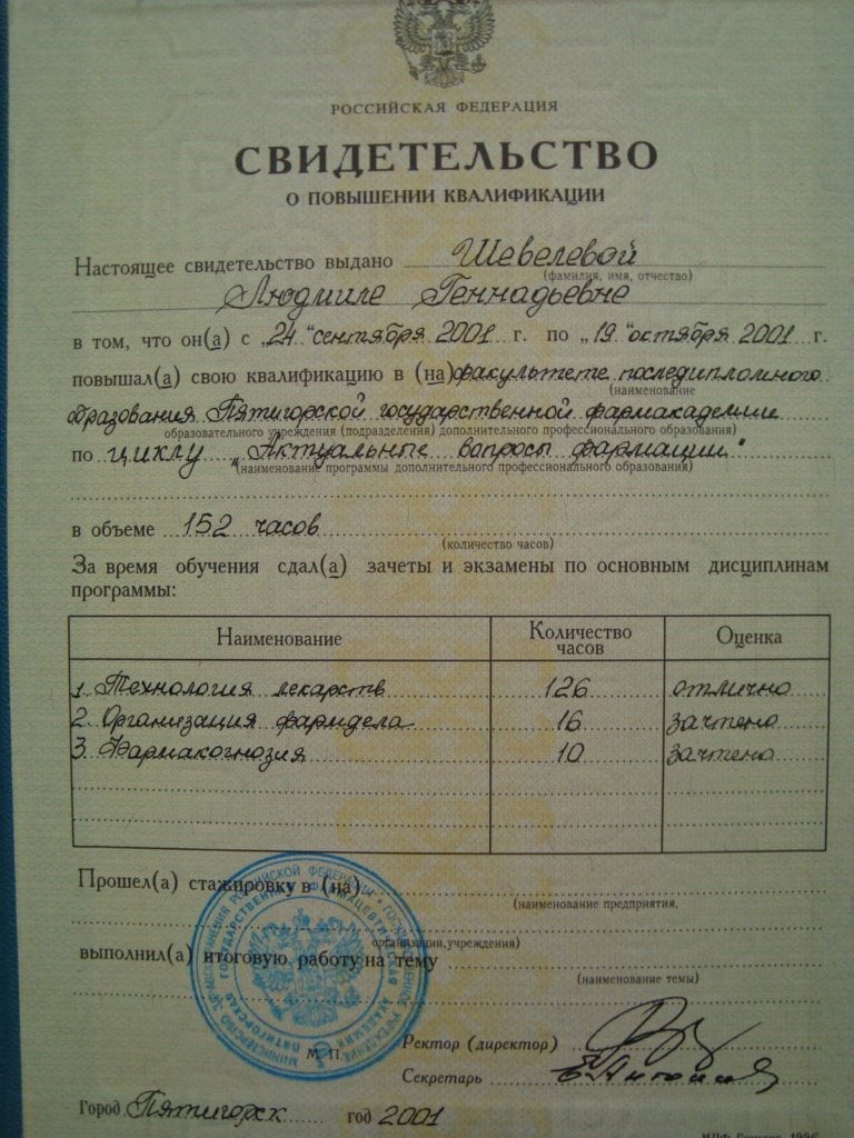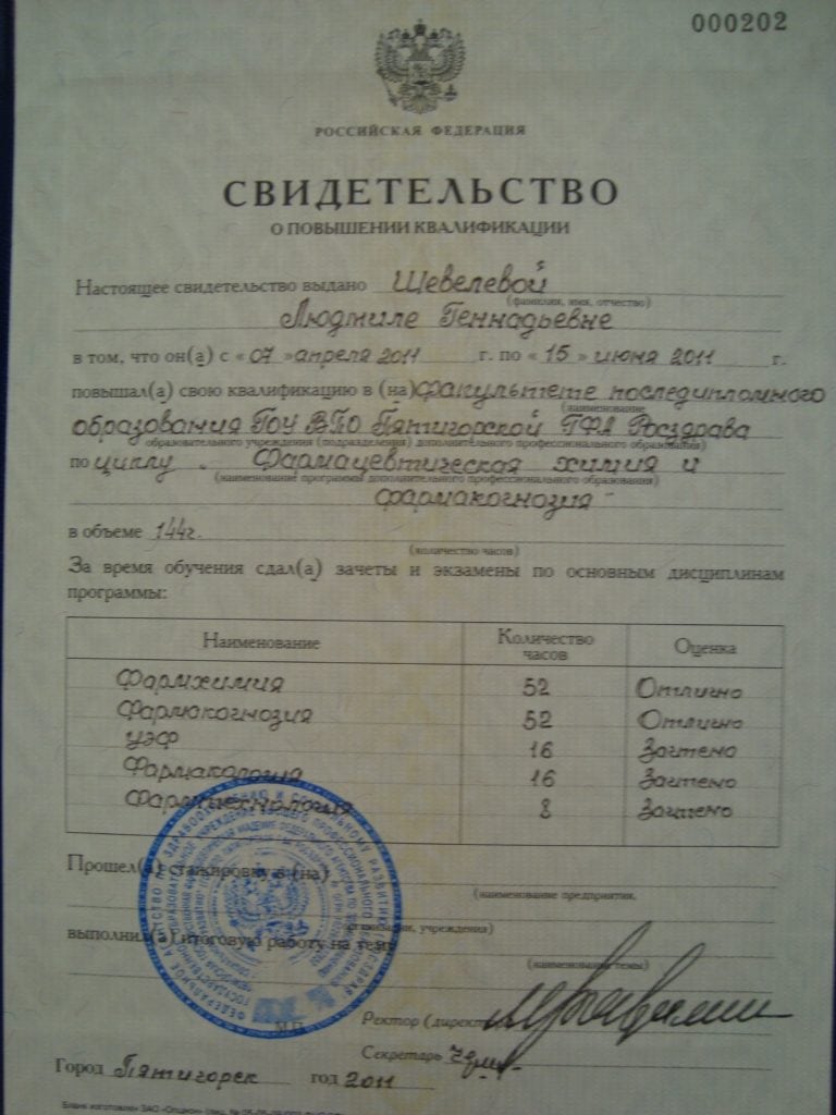 1990 г. — 1995 г. — Пятигорская государственная фармацевтическая академия. Диплом ЭВ№241433