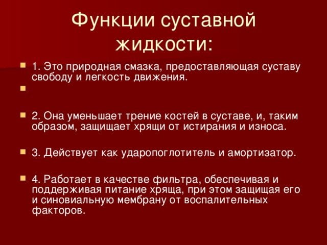 Функции синовиальной жидкости и ее изменение при воспалении сустава