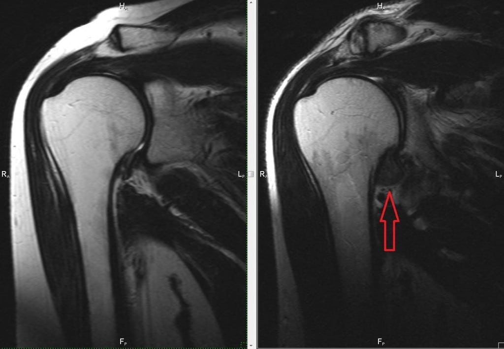 - магнитно-резонансная томография (МРТ). Более информативный диагностический метод. С его помощью можно обнаружить специфичное для болезни утолщение суставной капсулы. Однако из-за высокой стоимости МРТ практически не используют для диагностики капсулита;