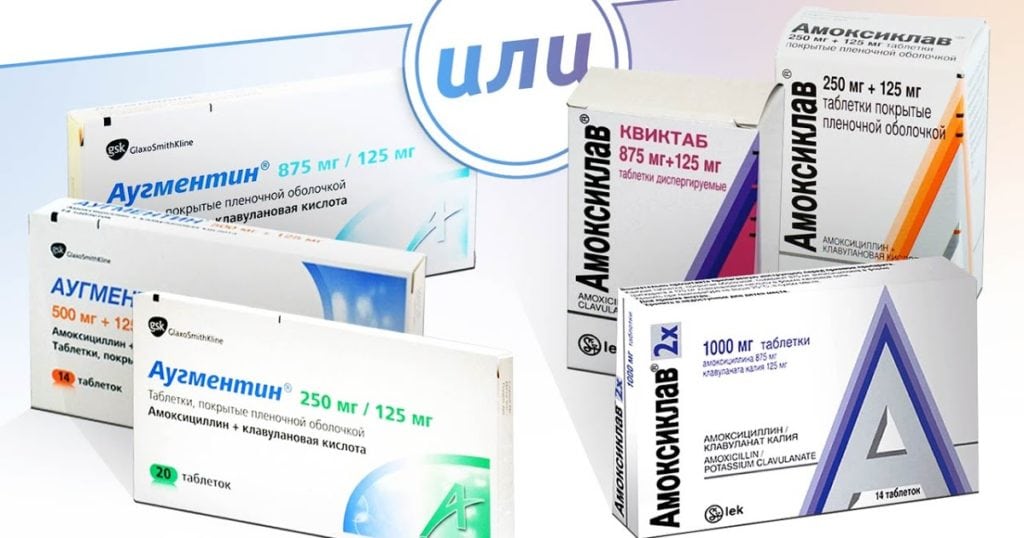 - полусинтетические, защищенные клавулановой кислотой пенициллины — Амоксиклав, Флемоклав, Аугментин.