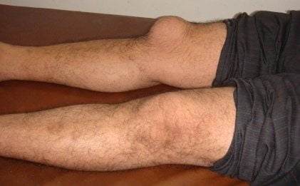 Если же больной не обращается за медицинской помощью, то бурсит принимает хроническую форму. Ее симптомы выражены не ярко. Припухлость на колене становится менее плотной, а при надавливании на нее не возникает дискомфортных ощущений. Объем движений сохранен, боли появляются только при избыточных нагрузках, переохлаждении, обострении других хронических патологий.