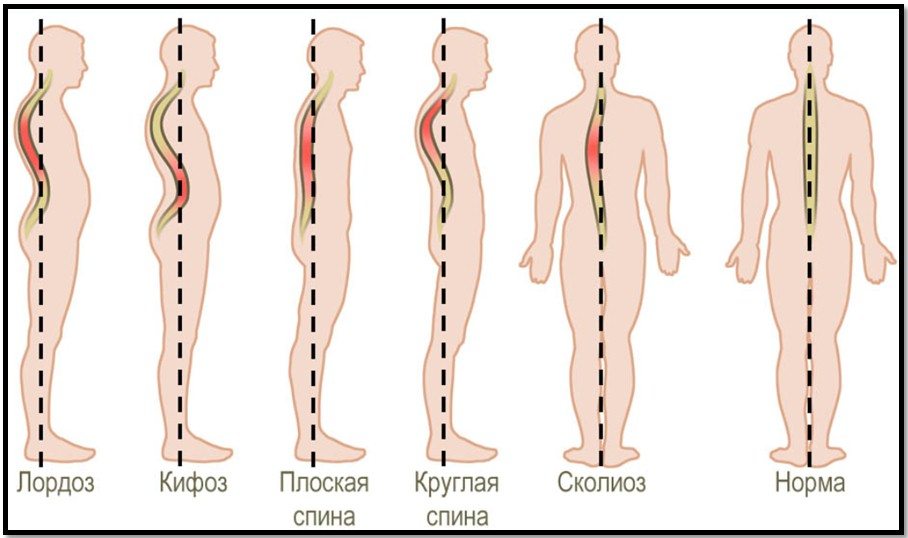 | Поясничный | Ведущие симптомы поясничной патологии — изменения осанки и тянущие, ноющие боли в нижней части спины |
