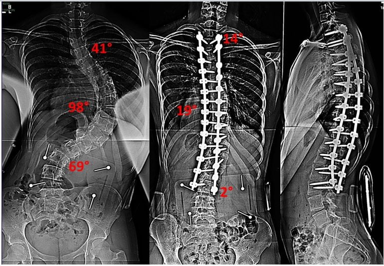 При проведении операции позвоночник выпрямляется с помощью специальных металлических конструкций, а пораженный отдел обездвиживается. Фиксация выполняется пластинами, стержнями, крючками, винтами. Чтобы расширить позвонки, придать позвоночному столбу правильную форму, хирурги используют костные трансплантаты. В зависимости от тяжести сколиоза, его локализации операция проводится трансторакально, дорсально или методом торакофренолюмботомии.