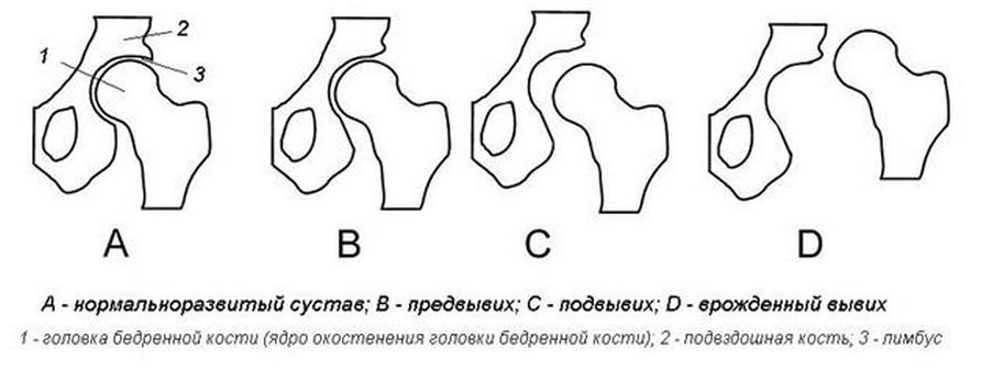 Нарушение развития одного из отделов ТБС приводит к его нестабильности. Связки, вертлужная губа, капсула сустава утрачивают способность удерживать головку бедренной кости в физиологичном положении. Возникает состояние предвывиха — головка бедра еще находится в вертлужной впадине, но достаточно любого интенсивного воздействия для ее выскальзывания.