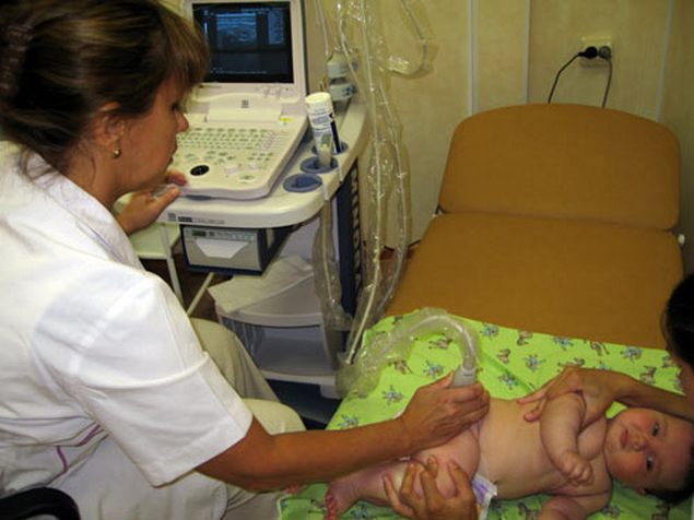 Ультразвуковое исследование ТБС ребенка наиболее предпочтительно при диагностировании дисплазии. Оно безопасно, а его результаты помогаю обнаружить неполноценность сустава даже при незначительных изменениях. Обследуется костная крыша, хрящевой выступ, устанавливается степень покрытия им головки бедра и центрация ее в покое и отведении. По результатам УЗИ врач рассчитывает угол наклона вертлужной впадины и сопоставляет полученные данные со значениями нормы.