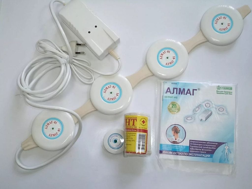 В аптеках и магазинах медтехники продаются специальные приборы для проведения физиотерапевтических процедур в домашних условиях — Теплон, Алмаг, АМТ. Они разнятся принципом действия, лечебной эффективностью, кратность использования. Терапевтическая активность устройств обусловлена физическими факторами. Это магнитное поле, вибрация, инфракрасное излучение, тепло. Представители официальной медицины весьма скептически относятся к таким методам терапии.