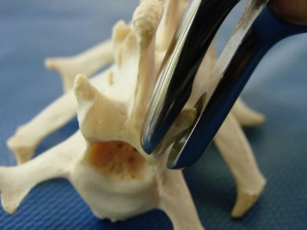 Если симптоматика выпадения функций прогрессирует или обнаружена опухоль, ущемляющая спинномозговые корешки, то нейрохирургом сразу проводится операция. Хирургическое вмешательство заключается в устранении компрессии и удалении причины ее возникновения. При межпозвоночной грыже выпячивание иссекается, обычно вместе с разрушенным диском, в процессе открытой или эндоскопической дискэктомии, микродискэктомии. Затем позвоночный столб фиксируют или устанавливают B-Twin-импланты. Для декомпрессии проводится ламинэктомия, или удаление дужки позвонка.