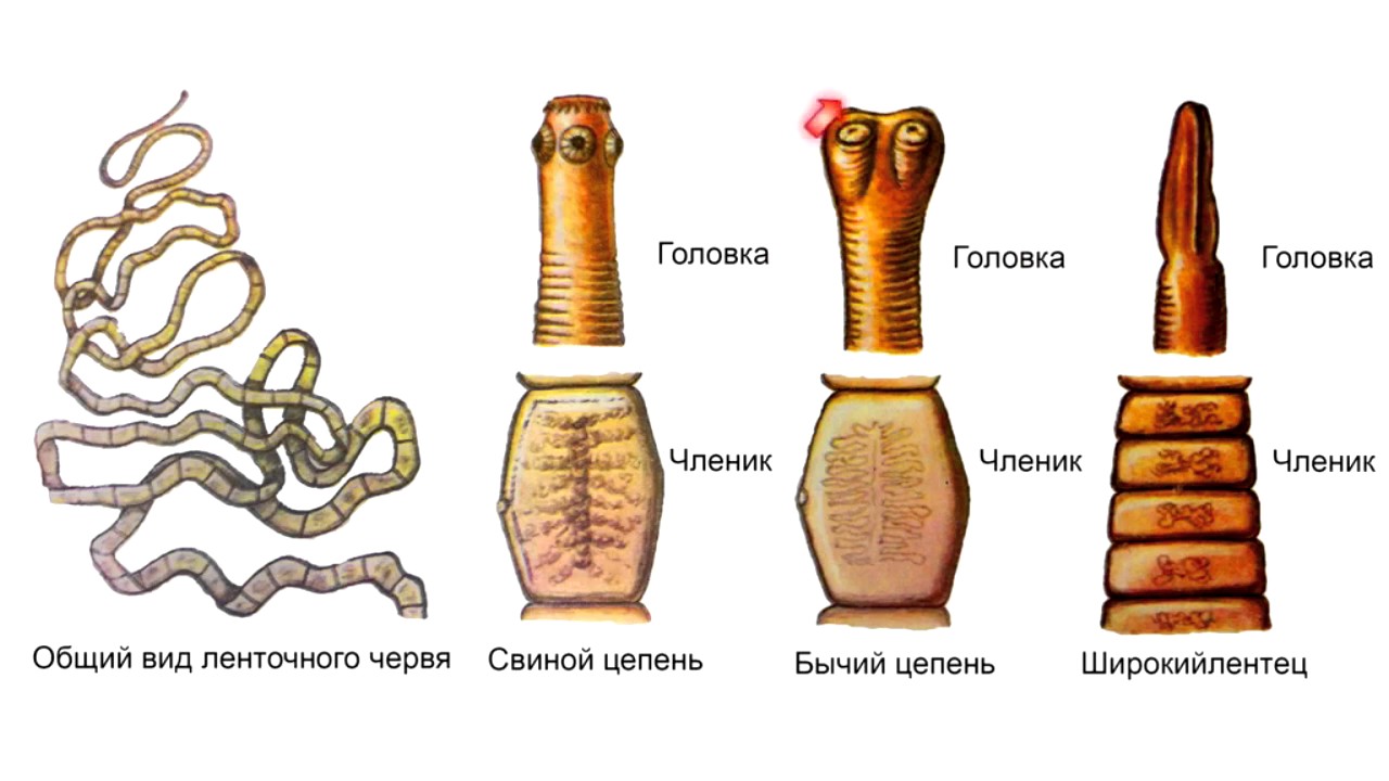 - бычий цепень, эхинококки, вызывающие тениаринхоз.