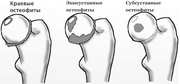 Рентгенологическая диагностика подтверждает наличие костных наростов по внешнему и внутреннему контуру вертлужной впадины.