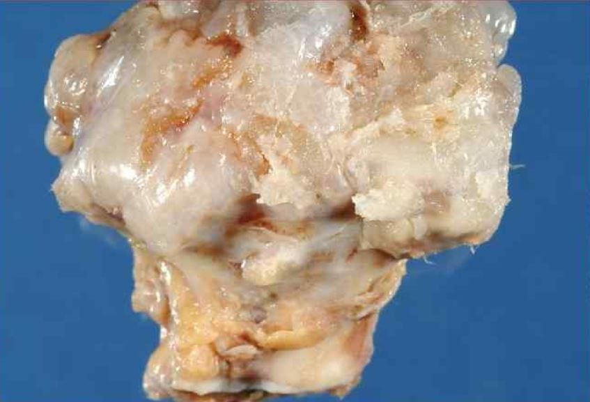 Вторая Новообразование постепенно окостеневает, начиная с центральной части. На его поверхности формируется гладкая хрящевая оболочка, за счет разрастания которой происходит укрупнение опухоли