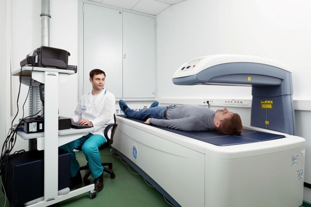 Для диагностики заболевания необходимо измерение минеральной плотности костной ткани. В медицине это исследование называют денситометрией. Его могут проводить с помощью ультразвука, рентгенографии или компьютерной томографии. Исследование выполняют в амбулаторных условиях, а вся процедура занимает 10-20 минут. В среднем денситометрия стоит около 4000 рублей.